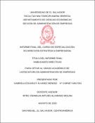 Item Plan Estratégico para la empresa MexiDulces para optar para el grado académico de licenciatura en administración de empresas(Universidad de El Salvador, 2025-08) Martínez Martínez, Jeckson Steven; Rivera López, Diego Fernando; Salamanca Carías, Fernando José; Yanes Bonilla, Neris Aracely; Benítez Andrade, Jorge Daniel; mm17039@ues.edu.sv; rl20004@ues.edu.sv; sc19039@ues.edu.sv; yb19001@ues.edu.svItem Plan estratégico para la empresa Crea y Regala(Universidad de El Salvador, 2025-09) Argueta Ramos, Katia Yudith; Canales Urbina, Geisol De La Paz; Moran Dominguez, Milagro De La Paz; Parada Argueta, Keila Ilenia; Benitez Andrade, Jorge Daniel; AR20047@ues.edu.sv; CU20002@ues.edu.sv; MD18013@ues.edu.sv; PA19024@ues.edu.svEl presente trabajo analiza a la empresa Crea y Regala, dedicada a la elaboración y comercialización de regalos personalizados con valor emocional. El propósito fue identificar sus principales fortalezas, debilidades y oportunidades, así como proponer estrategias que favorezcan su crecimiento y consolidación en el mercado salvadoreño. La investigación se realizó mediante un enfoque descriptivo y analítico, considerando el análisis financiero, comparaciones con competidores directos y la evaluación de procesos internos en administración, operaciones y marketing. Además, se diseñó un plan estratégico con acciones a corto, mediano y largo plazo. Los resultados evidencian que Crea y Regala posee ventajas en la personalización emocional de productos, la atención cercana al cliente y la innovación en diseños. No obstante, enfrenta limitaciones como la ausencia de manuales y procesos formales, la dependencia de redes sociales como único canal de ventas y la necesidad de una estrategia digital más profesional. A nivel financiero, se proyecta un crecimiento sostenido del 15 % anual en ventas, alcanzando $22,640.59 en 2027. En conclusión, Crea y Regala tiene el potencial de consolidarse como referente en el sector de regalos personalizados en El Salvador. Para lograrlo, debe fortalecer la formalización administrativa, capacitar al talento humano e implementar nuevos canales de venta y marketing. El plan estratégico planteado establece un camino realista y sostenible hacia su crecimiento y posicionamiento competitivo. This paper analyzes Crea y Regala, a company dedicated to the development and marketing of personalized gifts with emotional value. The purpose was to identify its main strengths, weaknesses, and opportunities, as well as to propose strategies to promote its growth and consolidation in the Salvadoran market. The research was conducted using a descriptive and analytical approach, considering financial analysis, comparisons with direct competitors, and the evaluation of internal processes in administration, operations, and marketing. In addition, a strategic plan was designed with short-, medium-, and long-term actions. The results show that Crea y Regala has advantages in the emotional personalization of products, close customer service, and design innovation. However, it faces limitations such as the lack of formal manuals and processes, the dependence on social media as the sole sales channel, and the need for a more professional digital strategy. On a financial level, sustained annual sales growth of 15% is projected, reaching $22,640.59 in 2027. In conclusion, Crea y Regala has the potential to consolidate its position as a leader in the personalized gift sector in El Salvador. To achieve this, it must strengthen its administrative formalization, train its human talent, and implement new sales and marketing channels. The proposed strategic plan establishes a realistic and sustainable path toward growth and competitive positioning.Item Plan Estratégico para la Empresa La Fachada(Universidad de El Salvador, 2025-08) Ostorga Valencia, Cindy Yacmina; Mejía Gaitan, Julia Guadalupe; Espinoza Vásquez, Lisbeth Del Carmen; Gómez Reyes, Rosmariz de Paul; Pineda Alfaro, Victoria Maribel; Benítez Andrade, Jorge Daniel; ov19005@ues.edu.sv; mg19049@ues.edu.sv; ev20002@ues.edu.sv; gr19033@ues.edu.sv; pa18028@ues.edu.svTitulo: Plan Estratégico para La Empresa La Fachada. Resumen: El presente trabajo fue desarrollado para la empresa “La Fachada”, ubicada en San Francisco Gotera, El Salvador; con el objetivo de analizar su situación actual y proponer estrategias que fortalezcan su desempeño organizacional y su posicionamiento en el sector de fabricación e instalación de puertas, ventanas y cielos falsos. La consultoría abarcó un diagnóstico integral de las principales áreas funcionales de la empresa con el fin de identificar oportunidades de mejora y diseñar un plan estratégico orientado a la eficiencia, rentabilidad y sostenibilidad del negocio. Como resultado del análisis realizado, se plantearon propuestas enfocadas en la capacitación continua del personal, fidelización de clientes, el fortalecimiento de la presencia digital y la diversificación de servicios con valor agregado. Asimismo, se definieron acciones específicas para optimizar la gestión interna, mejorar la calidad del servicio y aprovechar las tendencias del mercado, alineando estas iniciativas con una visión empresarial innovadora y sostenible. Este trabajo busca proporcionar a “La Fachada” herramientas prácticas y estratégicas que le permitan consolidarse en el rubro, incrementando su competitividad y contribuyendo al desarrollo empresarial en la zona oriental del país. Abstract: This consulting project was developed for “La Fachada”, located in San Francisco Gotera, El Salvador, with the objective of analyzing its current situation and proposing strategies to strengthen its organizational performance and market positioning in the manufacturing and installation sector of doors, windows, and false ceilings. The consultancy included a comprehensive diagnosis of the company’s main functional areas, in order to identify improvement opportunities a